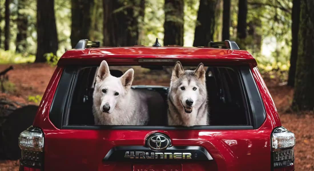 Another option is the Toyota Highlander, which is ideal for hauling your family and dog. This three-row SUV has a fold-down third row for extra cargo room, a spacious 2nd row and three-zone climate control, which means ample space and comfort for everyone. If you’re seeking a Toyota fit for rugged adventure, the Toyota 4Runner offers a large rear cargo area for your dog along with off-road-ready features like an available SofTex interior, all-weather floor mats and a sliding rear cargo deck for easy loading and unloading.