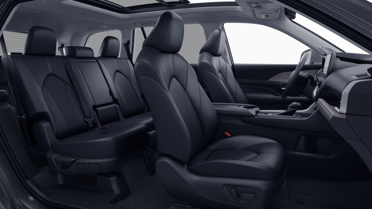 • 7-passenger seating with second-row fold-down captain's chairs and fold-down inboard armrests, adjustable headrests and two cup holders mounted on the floor; and 60/40 split, fold-down third-row seats with sliding headrests and recline function